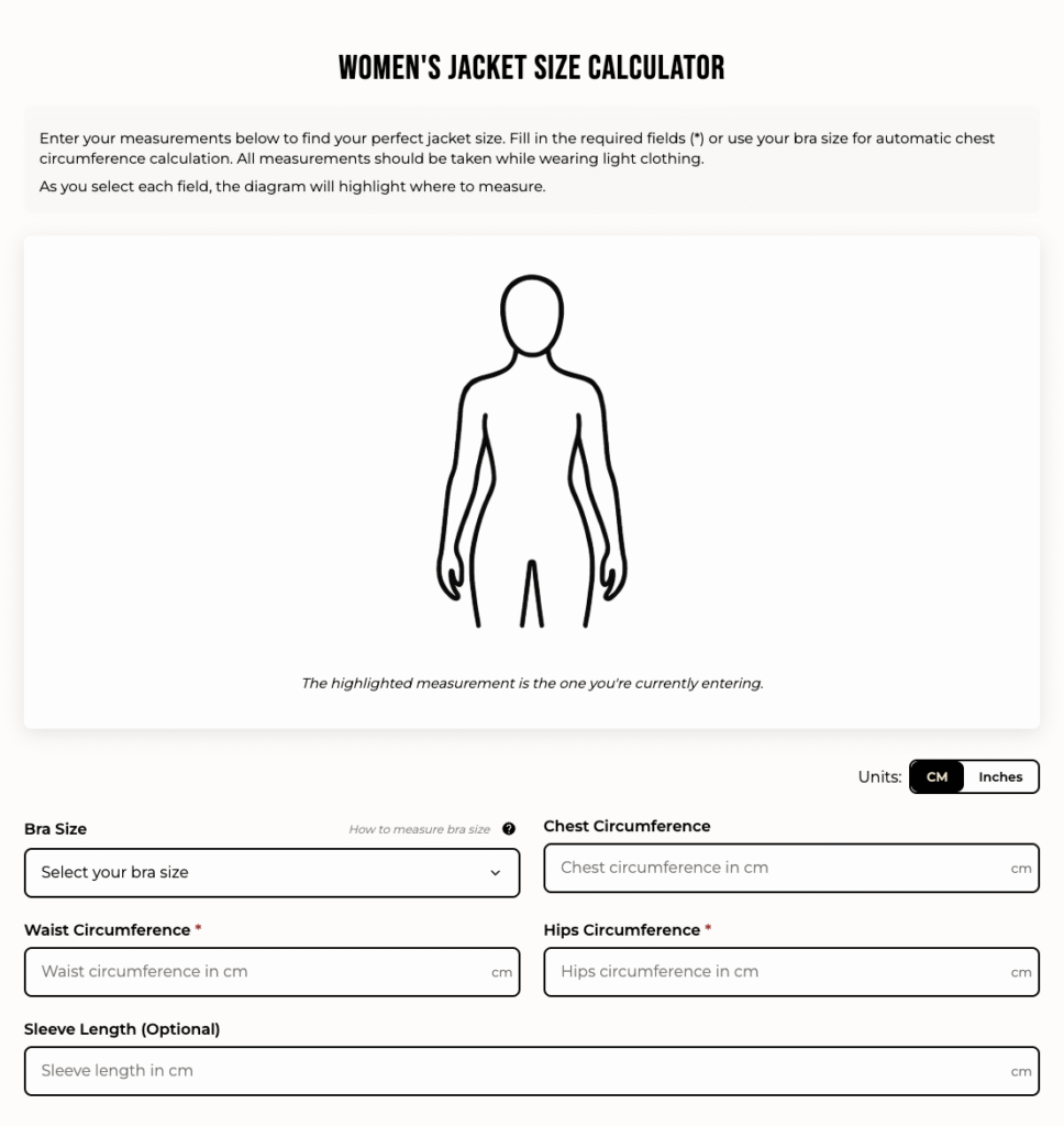 Each jacket comes made to order based on the measurements you provide via our jacket fitter tool.