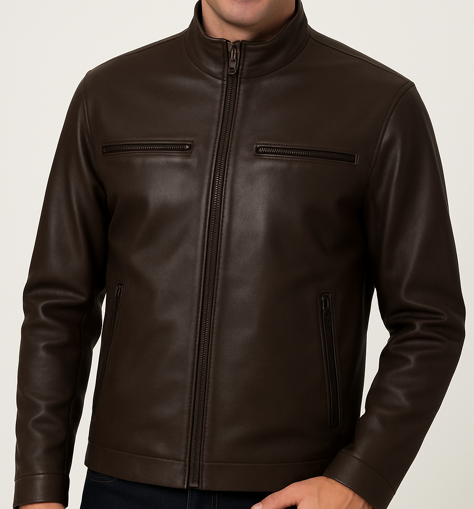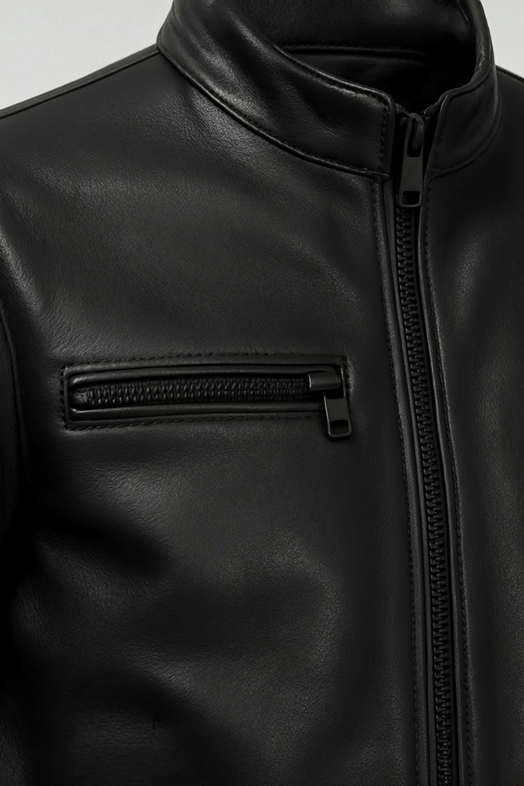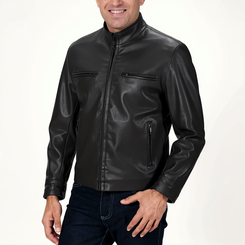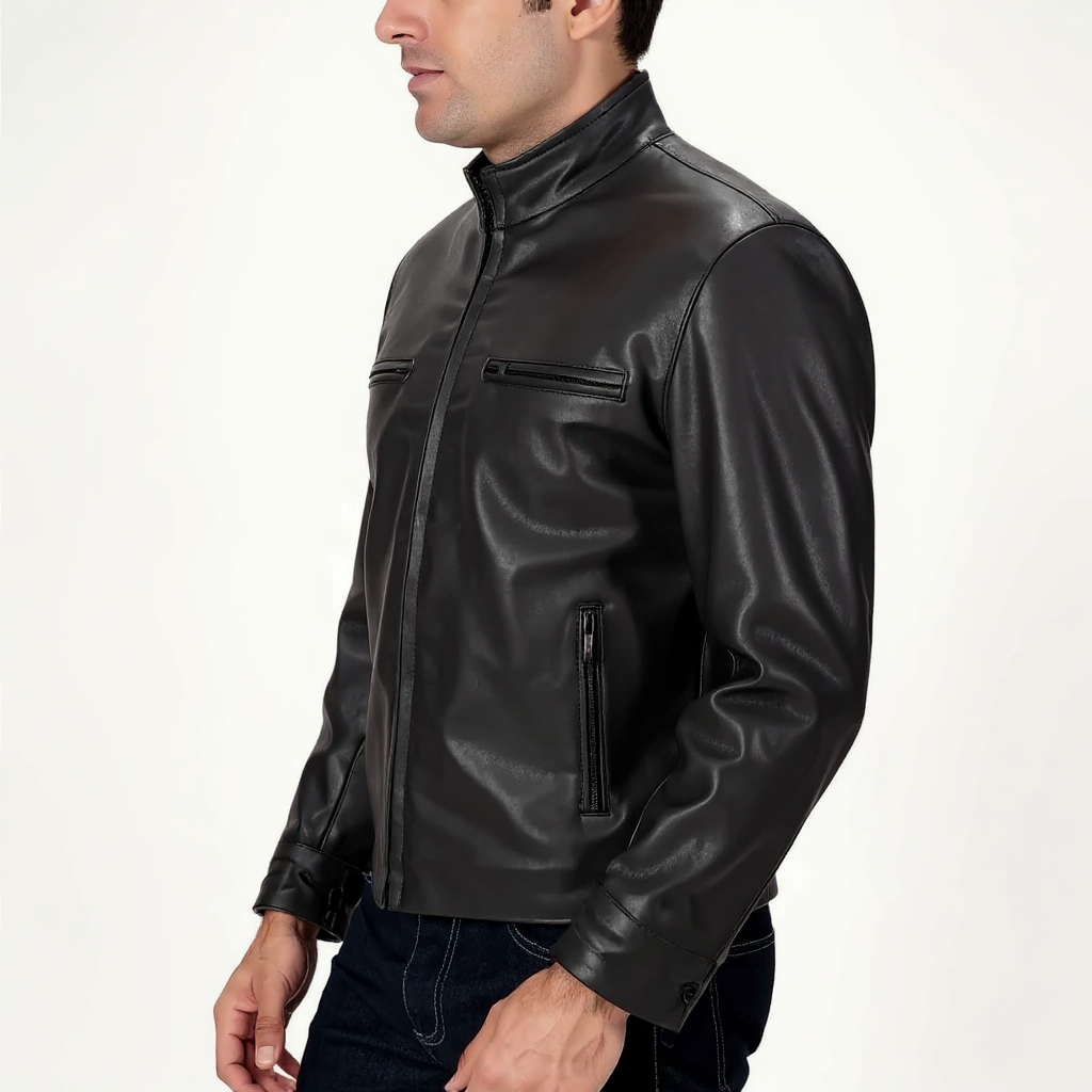 Designed with precision, The Eagle features a streamlined silhouette with four front zippered pockets—two at the chest and two at the sides—for secure storage without bulk. A snap-tab collar and concealed front zipper closure complete the look, offering just the right amount of edge without sacrificing comfort.