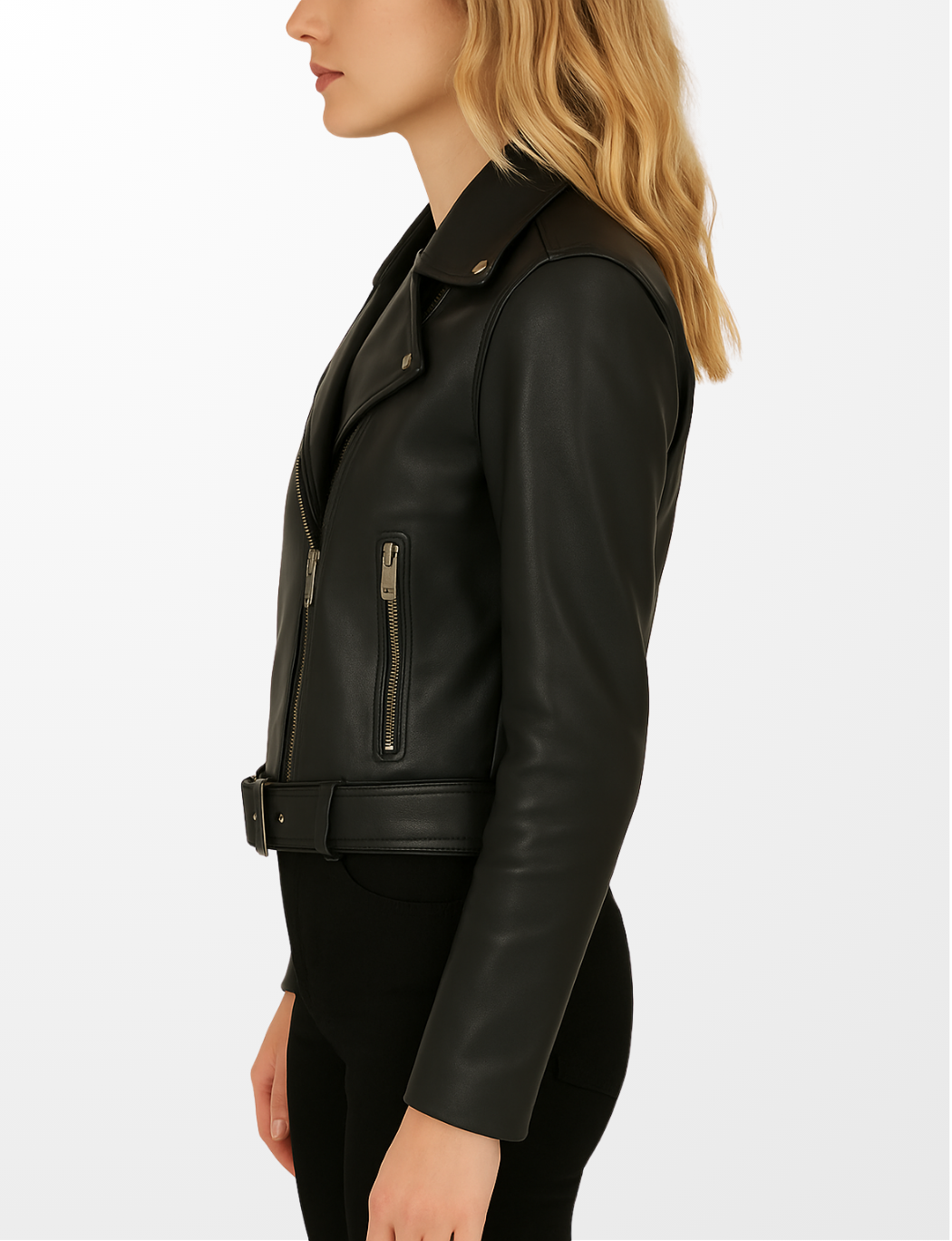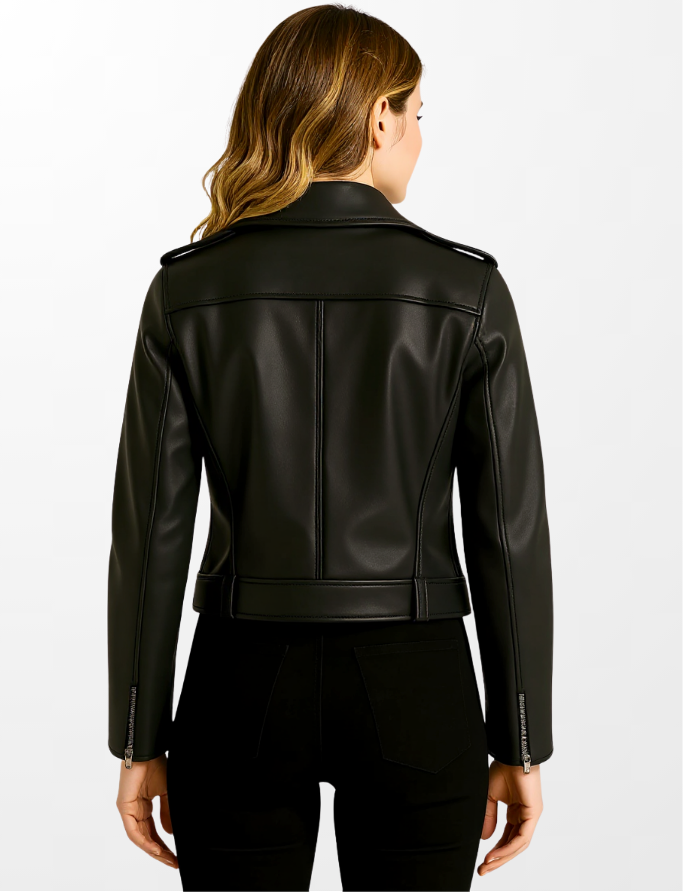 Crafted from premium full-grain leather, The Raven features classic moto styling with a rebellious twist: asymmetrical front zip, shoulder epaulets, silver hardware, and a belted waist for a custom fit. It’s as functional as it is fearless, designed to leave a lasting impression with every turn. Order it standard or customize to your liking.