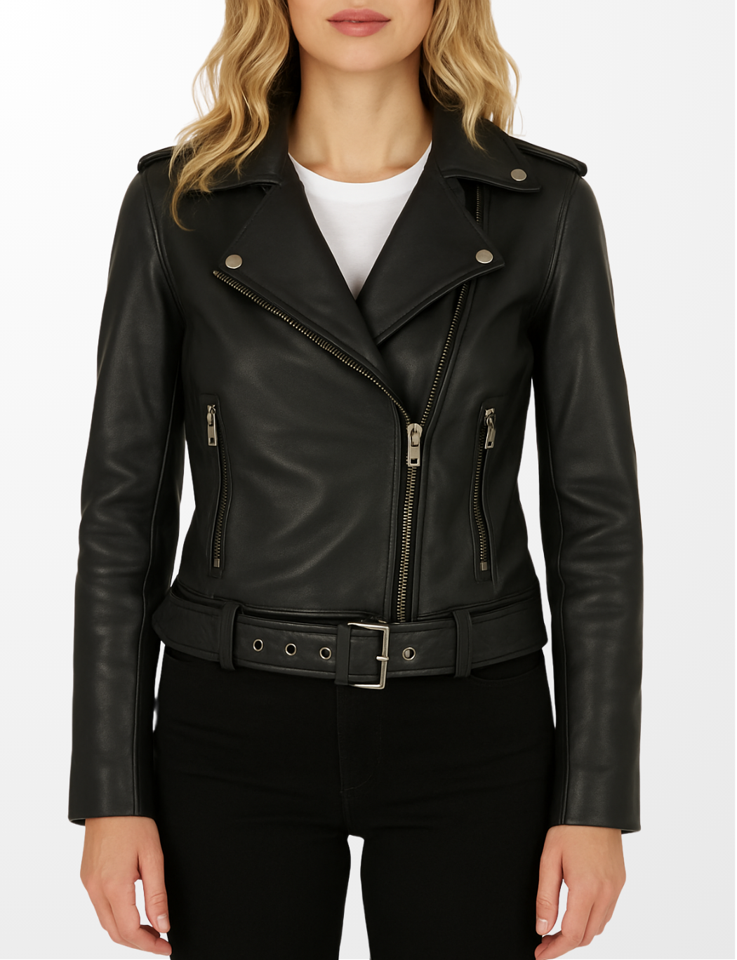 Darkness meets elegance in The Raven: a leather biker jacket born from the shadows and kissed by moonlight. This classic moto look captures the mystique of the night and the boldness of a rider who takes her own path.