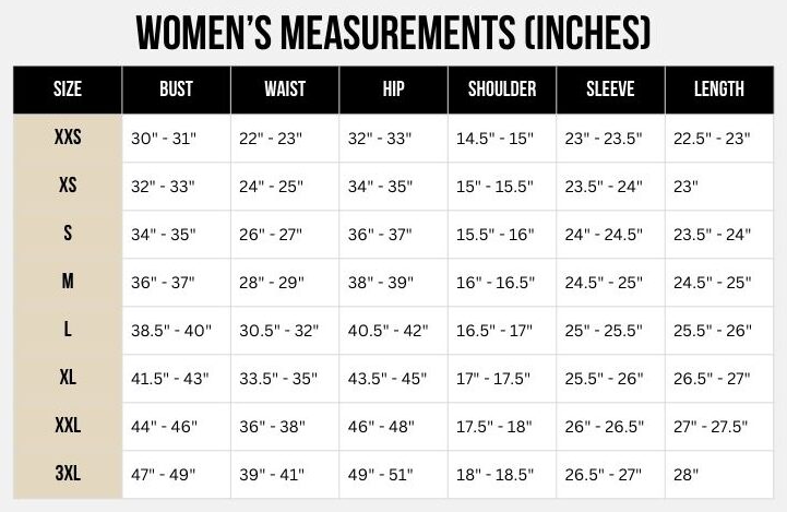 Measurements are taken in circumference. Refer to your Chest and Waist to determine your best fit. Size up if layering.